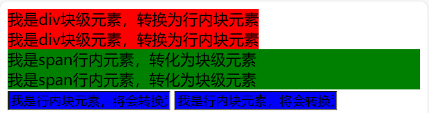 <div>我是div块级元素,转换为行内块元素</div>